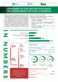 With the support of Open Society Forum, Globe International center conducted the monitoring of Civil and Political rights violations in order to monitor whether or not measurements by the Government of Mongolia are in compliance with the principle of International Human Rights restrictions in the event of high level of disaster protection and public preparedness in response to the COVID-19.