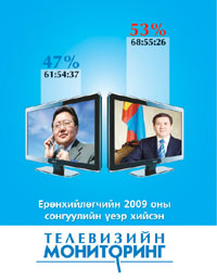 Ерөнхийлөгчийн 2009 оны сонгуулийн үеэр үндэсний хэмжээнд өргөн нэвтрүүлэг эрхэлдэг таван телевизийн сонгуулийн сурталчилгаанд хийсэн мониторингийн дэлгэрэнгүй тайлан хэвлэгдлээ. Мониторингийг Нээлттэй Нийгэм Форумын санаачилгаар байгуулагдсан “Шударга сонгуулийн төлөө иргэний нийгмийн сүлжээ”-ний хүрээнд “Глоб Интернэшнл” төрийн бус байгууллага хийсэн юм.