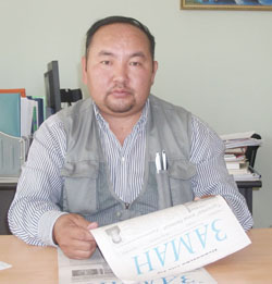 "Монгол заман" сонины эрхлэгч Р.Асылбек шинэхэн сониныхоо шинэ дугаартай “Глоб Интернэшнл” ТББ дээр ирсэн юм.