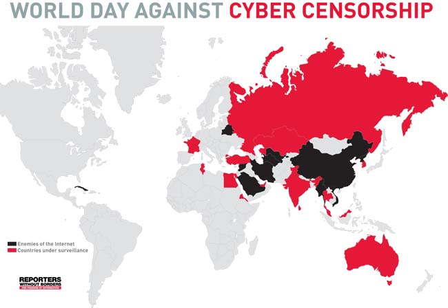 “Хил хязгааргүй сурвалжлагчид” байгууллага эдгээр орон интернетийн орчинд хяналт, хязгаар тавьдаг, интернэтээр үзэл бодлоо илэрхийлэх боломж олгодоггүй, хэрэглэгчдийн эрх ашгийг боогдуулдаг, олон нийтийн сүлжээгээр үзэл бодлоо илэрхийлсэн хүмүүс, блогчдыг баривчилсан зэрэг нь “интернетийн дайсан” орнуудын жагсаалтанд орох болсон гэж онцолж тэмдэглэсэн байна.