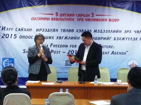Шагналыг 2014 оны 5-р сарын 01-ний өдөр Дэлхийн хэвлэлийн эрх чөлөөний өдөрт зориулсан “Илүү сайхан ирээдүйн төлөө хэвлэл мэдээллийн эрх чөлөө: 2015 оноос хойших хөгжлийн хөтөлбөрийг бэхжүүлэх нь” сэдвийн дор зохион байгуулсан дугуй ширээний ярилцлагын үеэр “Монгол коммент” нэвтрүүлгийн редактор М.Батбилэгт гардууллаа.