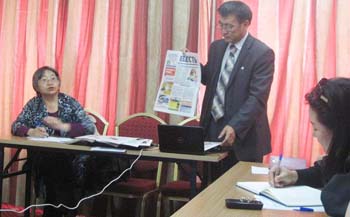 Марат Токоев, зохицуулагч Мери Бекешева нар 2011 оны 11-р сарын 13-ны өдөр Бишрэлт зочид буудлын хурлын танхимд Монголын сэтгүүлчдийн төлөөлөгчидтэй уулзалт хийлээ.