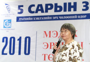 Mrs. Kh Naranjargal, Globe International CEO presented the 2009 Media Freedom Report. She stressed that Mongolian government had taken no actions towards making media legal environment favourable and Freedom of Information laws still delaying since it was included to the Parliament Agenda in 2004. She said “Those who have something to hide are afraid from disclosing information”. She also said that access to information is the biggest obstacle for journalists in their professional activities to tell the truth to the public. “In accordance with the results of a survey among journalists and free expression monitoring carried out by Globe International censorship is still a big issue, particularly editorial censorship is becoming more serious than before. It comes through media ownership. The Mongolian journalists are highly self-censored and they becoming dolls at hands off their owners”-she noted.