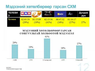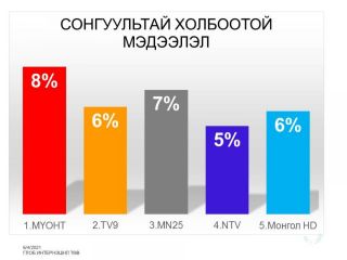 МУ-ын Ерөнхийлөгчийн 2021 оны сонгуульд сурталчилгааны телевизийн мониторингийн I үеийн үр дүн